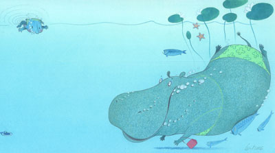 Originalillustration für »Hat das Nilpferd Streifen?«, Boje Verlag, Köln 2006