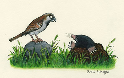 Axel Scheffler(2007) Originalillustration für »Von Drachen und Mäusen«, Beltz & Gelberg, Weinheim 2008 Mischtechnik auf Papier Motiv: 16 x 9 cm Blatt: 19,5 x 13 cm 600 Euro zzgl. 6,50 Euro Versandkosten