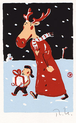 Thomas M. MüllerElch im roten Mantel (2004) Siebdruck Motiv: 10,1 x 15,5 cm Blatt: 13,7 x 20 cm Auflage: 30 nummeriert und signiert 70 Euro zzgl. 6,50 Euro Versandkosten
