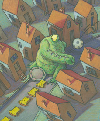 Sabine WilharmKrindelkrax (1995) Originalillustration Coverentwurf für »Krindelkrax«, Fischer Schatzinsel, Frankfurt 1995 Acrylfarben, Buntstift, Kreiden auf Papier Motiv: 19,9 x 25 cm Blatt: 20,7 x 27,2 cm 1190 Euro zzgl. 6,50 Euro Versandkosten
