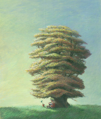 Sabine WilharmWie ein Baum (1995) Originalillustration Cover für »Wie ein Baum«, Elefanten Press, Berlin 1995 Acrylfarben, Buntstift auf Papier Motiv: 24,3 x 29,3 cm Blatt: 24,3 x 28,5 cm 1000 Euro zzgl. 6,50 Euro Versandkosten